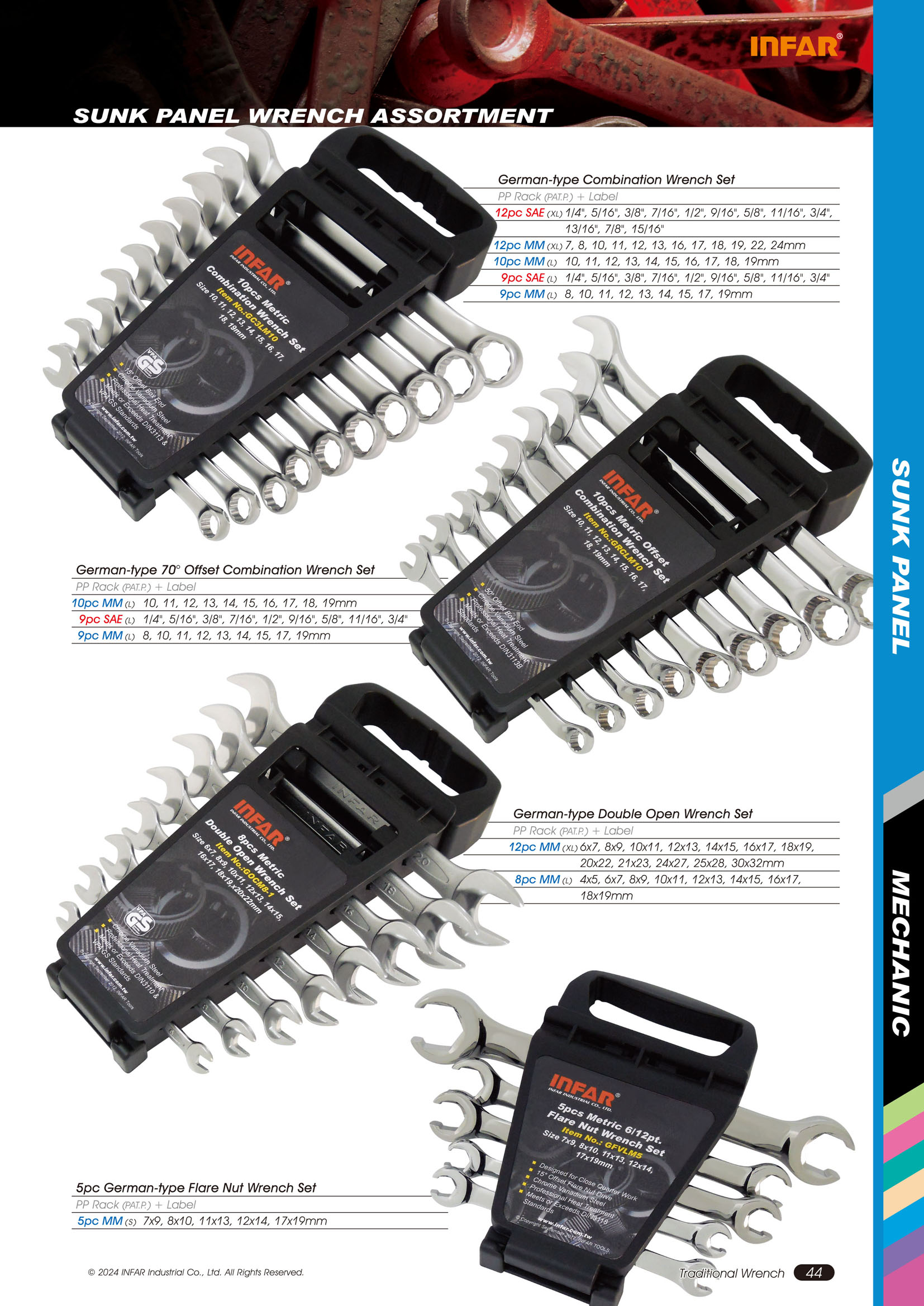Product Name : GERMAN-TYPE 70° OFFSET COMBINATION WRENCH SET IN PP RACK