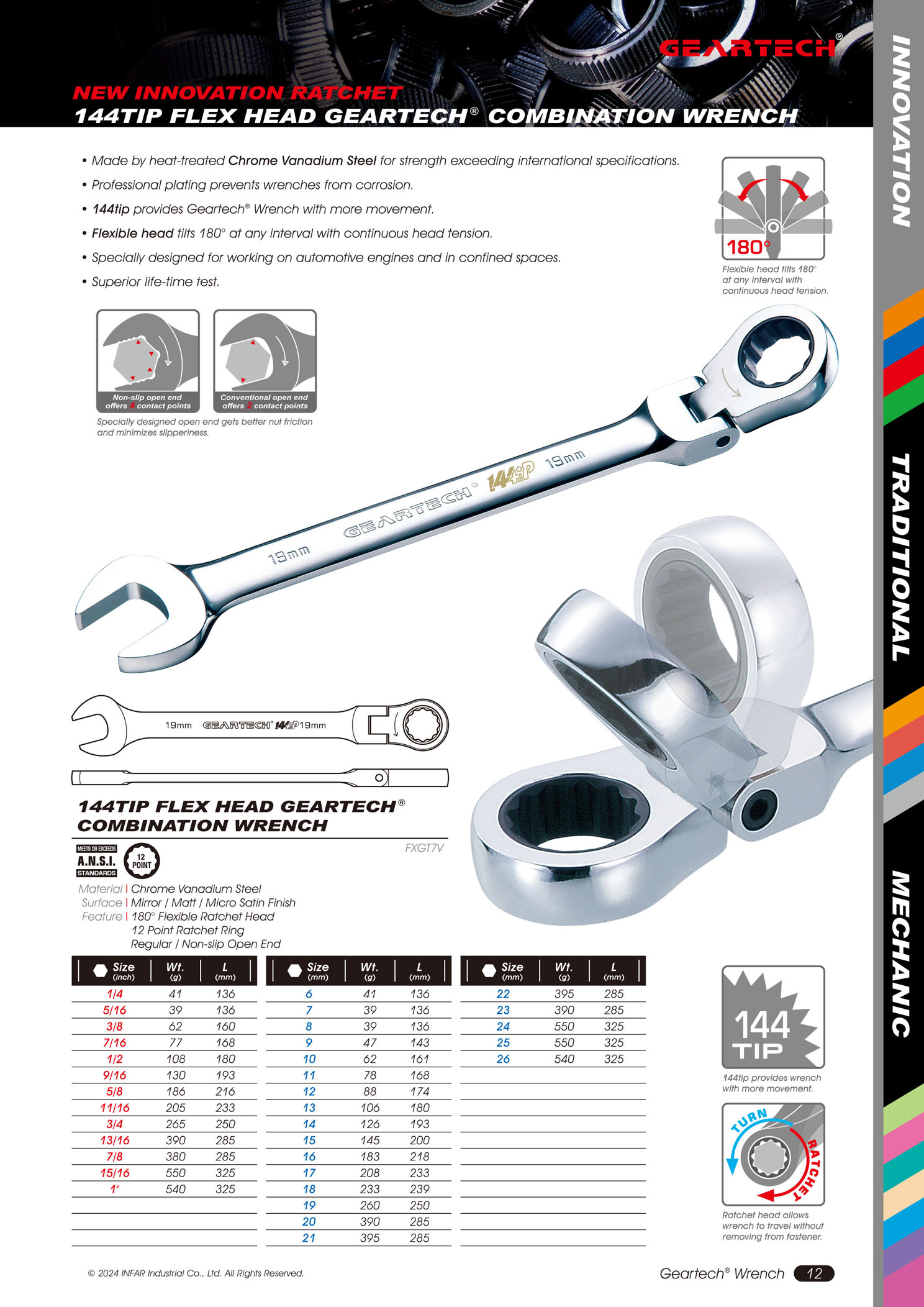 144tip provides Geartech® Wrench with more movement.