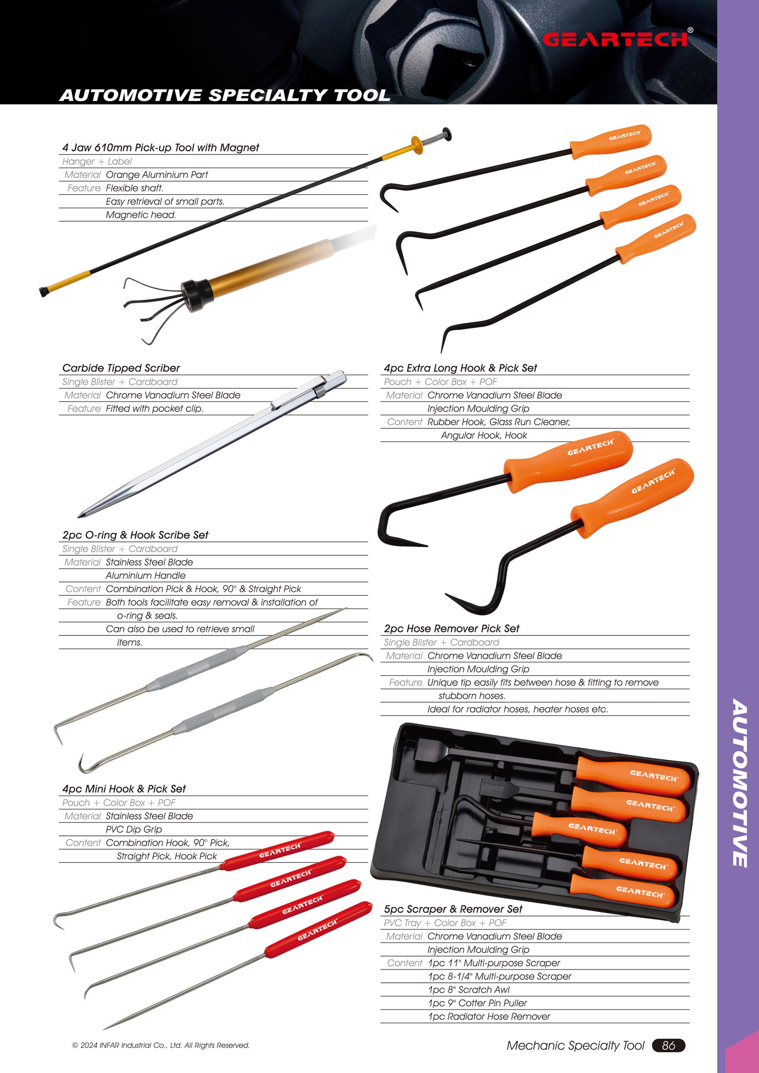 Combination Hook, 90° Pick, Straight Pick, Hook Pick