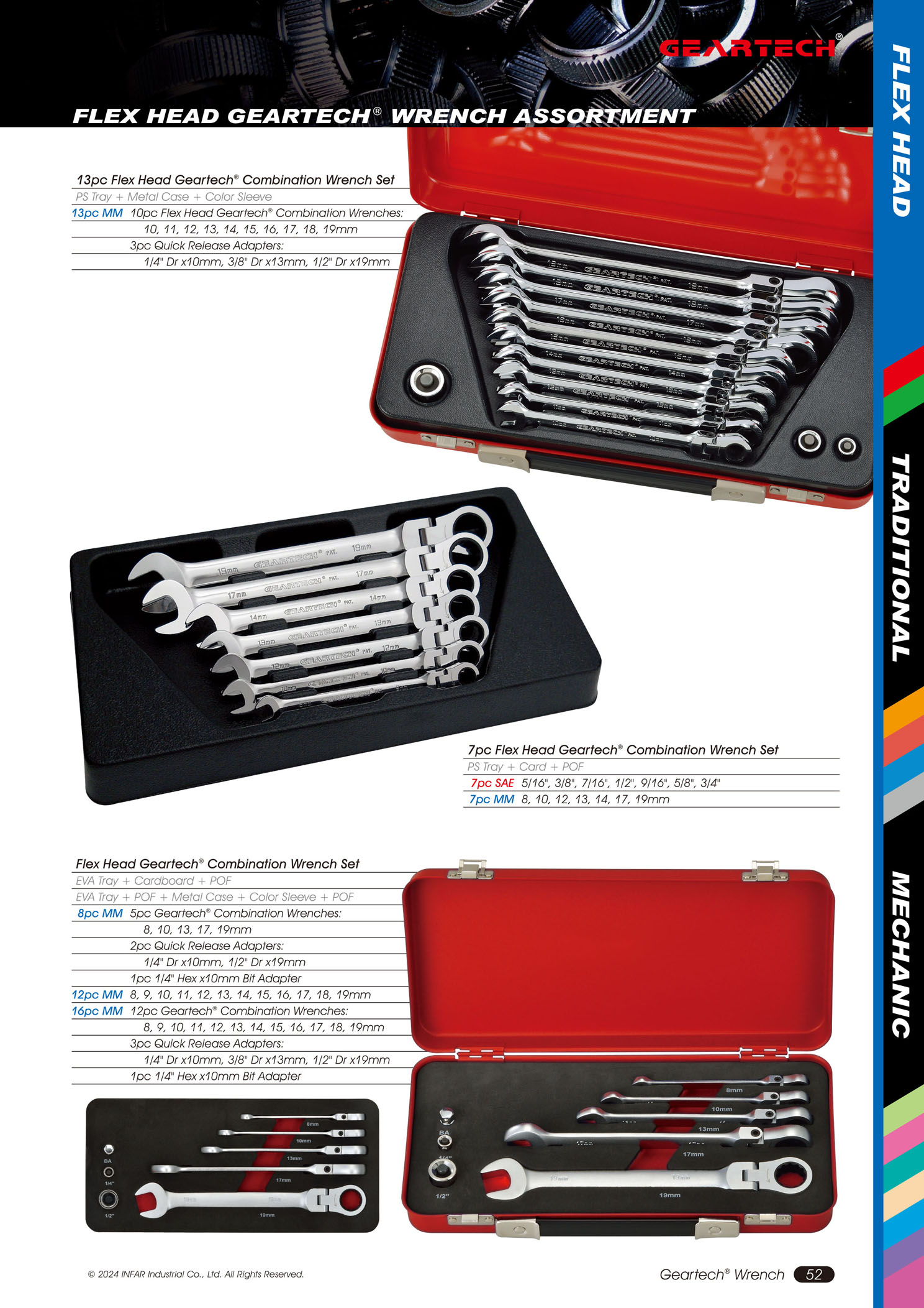 Product Name : FLEX HEAD GEARTECH® COMBINATION WRENCH SET IN METAL CASE